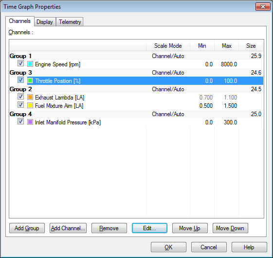 The relevant properties window displays. Figure 1. Example of the properties window for a Time Graph component