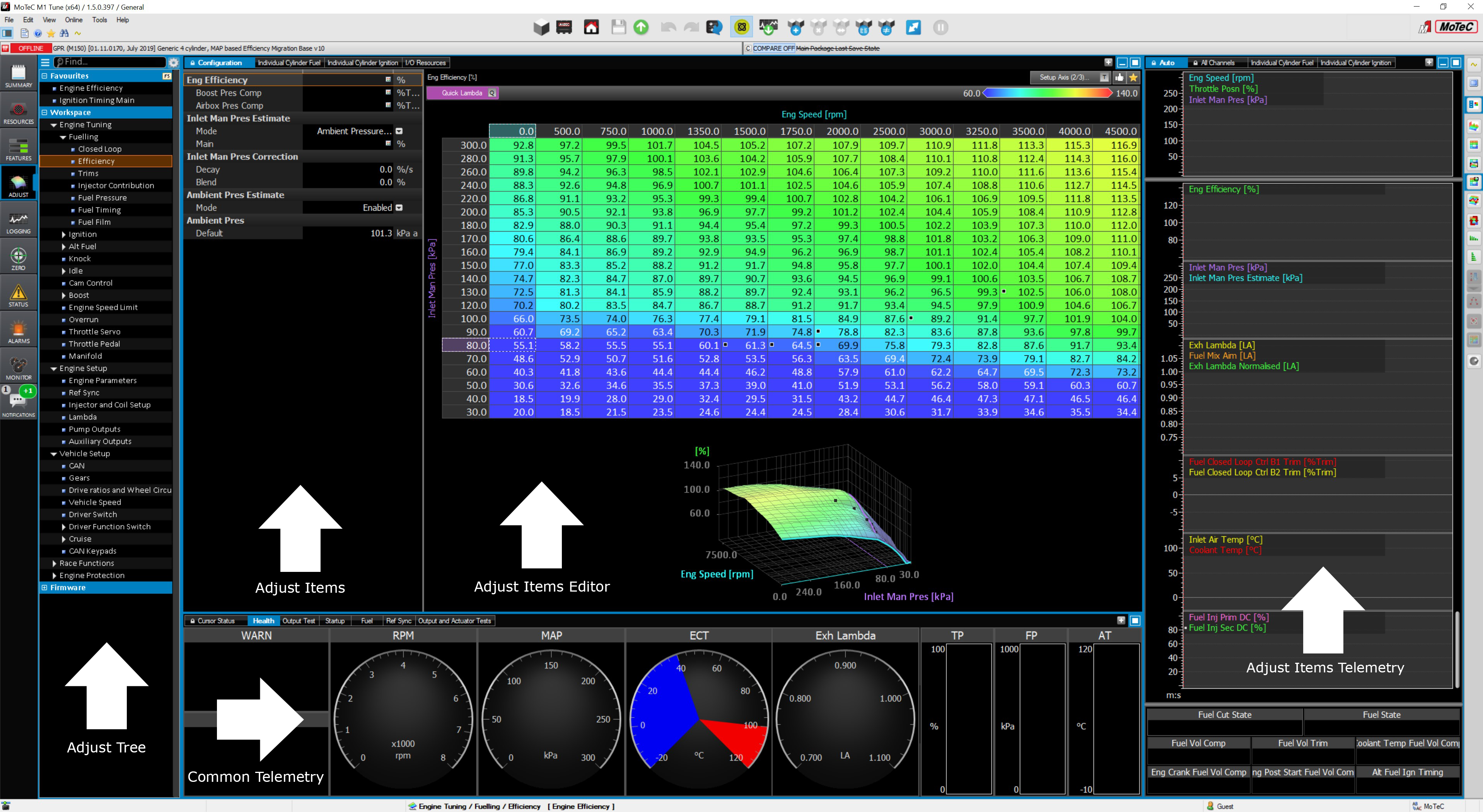 The Adjust view is used for configuring and tuning all the subsystems and parameters in the Package.