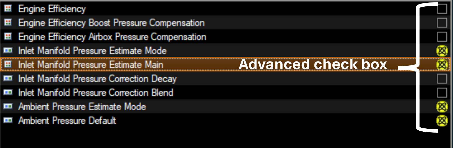 To assign the Advanced filtering status to a configuration parameter, the advance check box will need to be enabled.