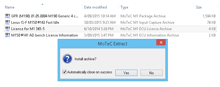 The M1 Archive may contain multiple files and complete directory structures, similar to a self extracting ZIP file. The locations are automatically determined when the file is extracted, requiring no input from the user.