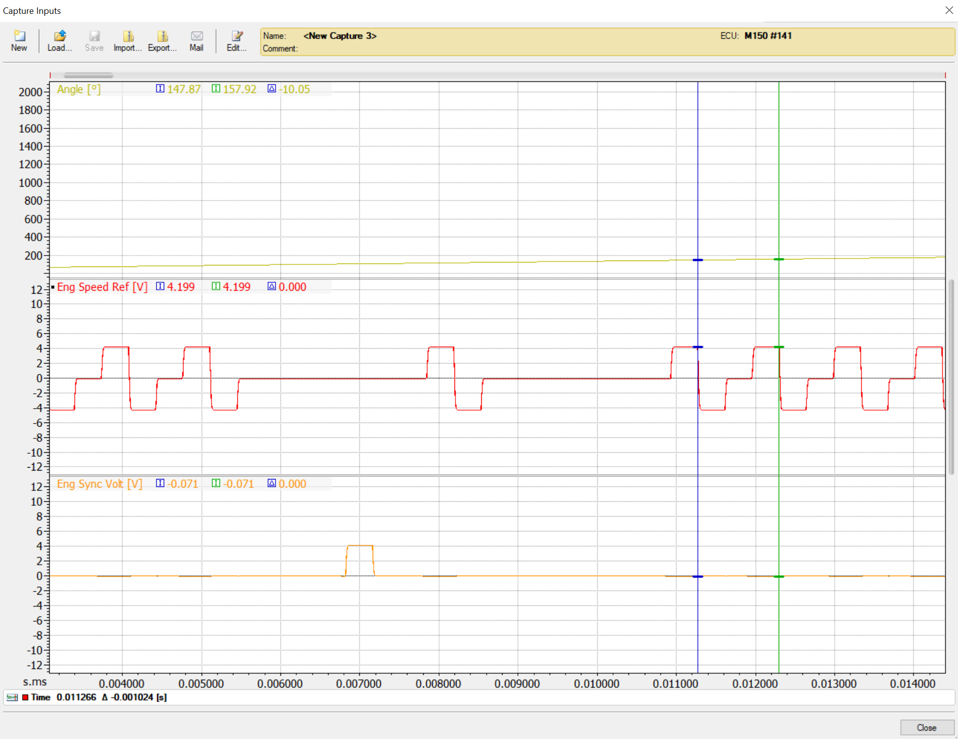 To aid in setting up Engine Speed Ref and Engine Sync (Crank and Cam sensors). Use the Capture Inputs tool to get a graphical representation of the sensor output.
