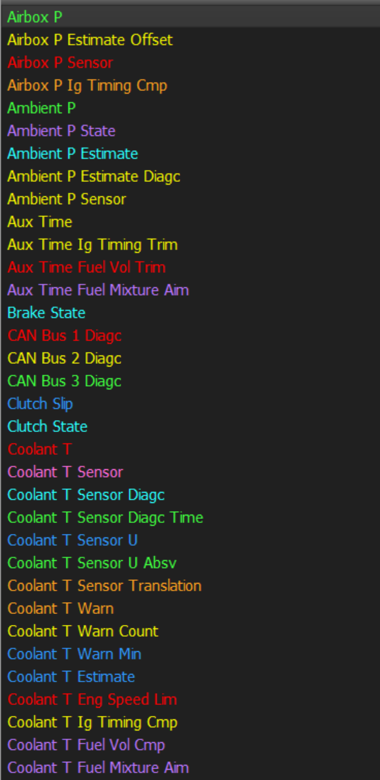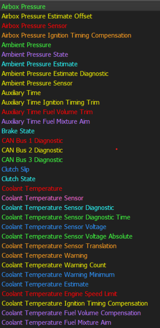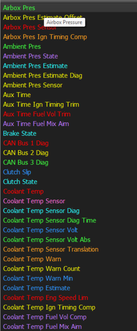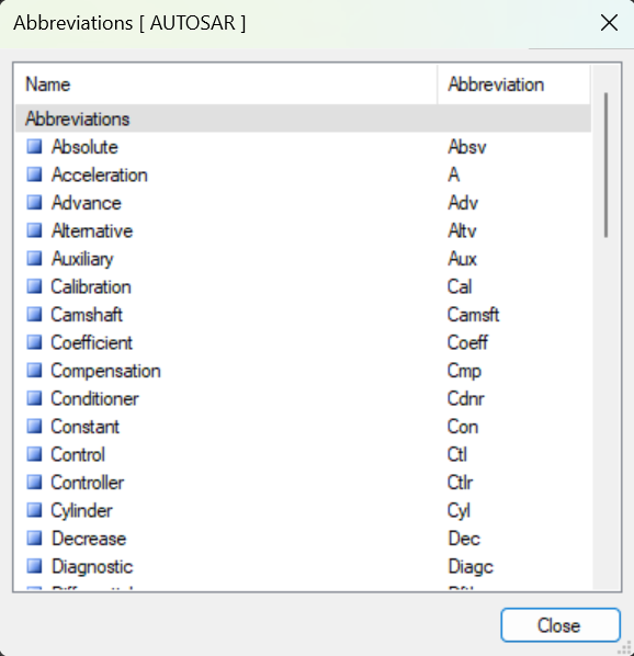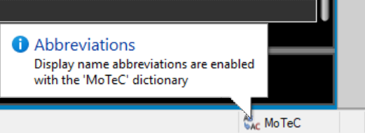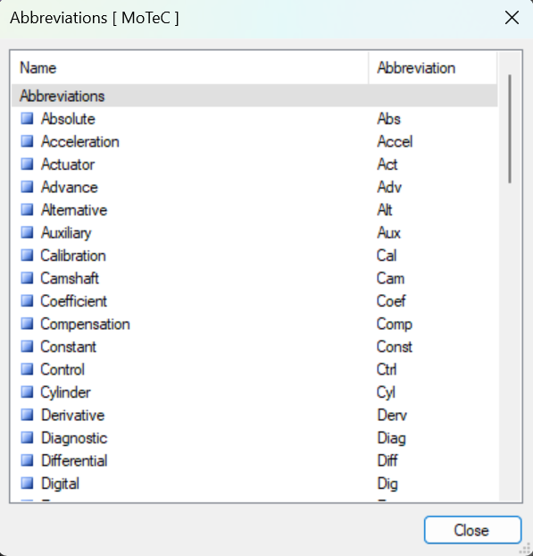 An abbreviation list for the MoTeC and AUTOSAR dictionary may be viewed by selecting