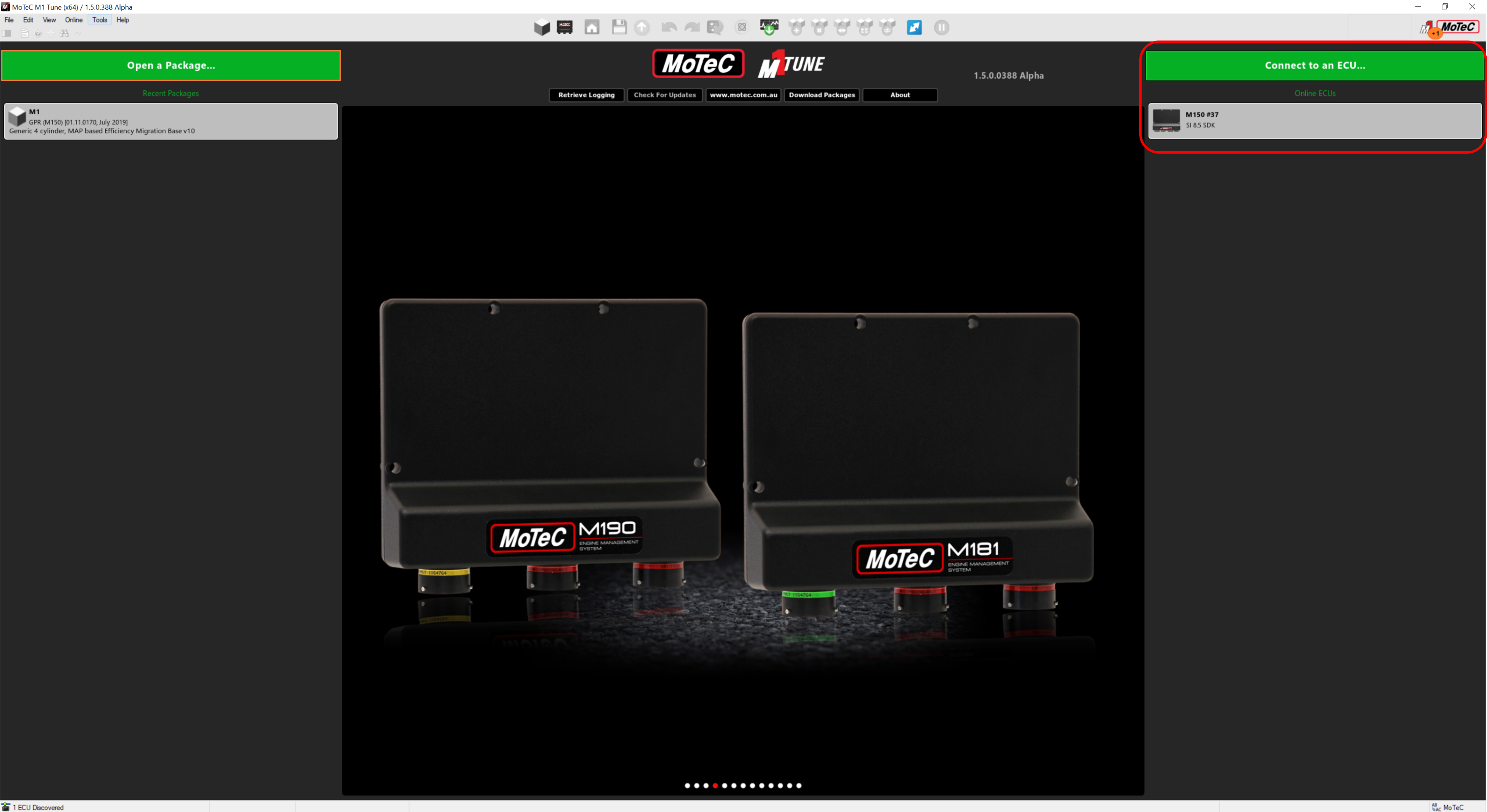 Note: If M1 Tune does not discover the ECU, see Resolving Undiscovered ECU Problems