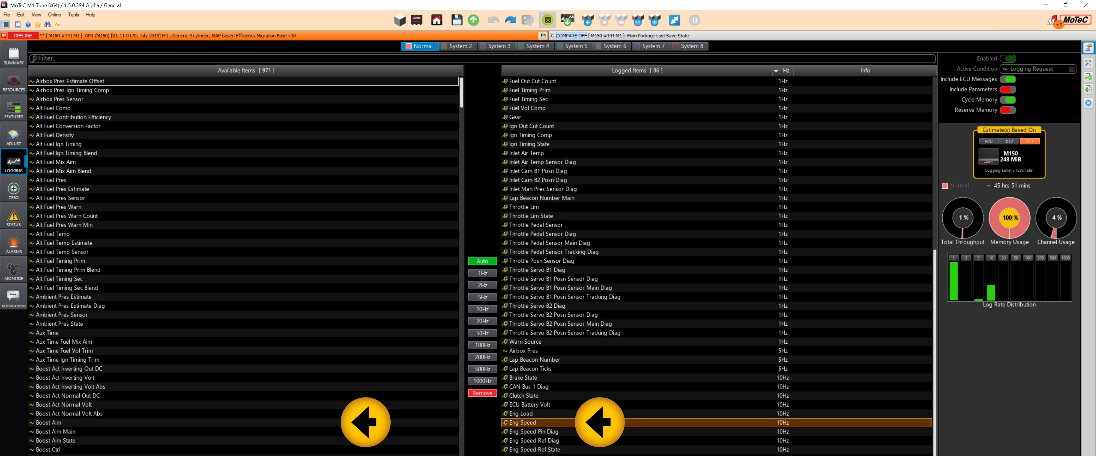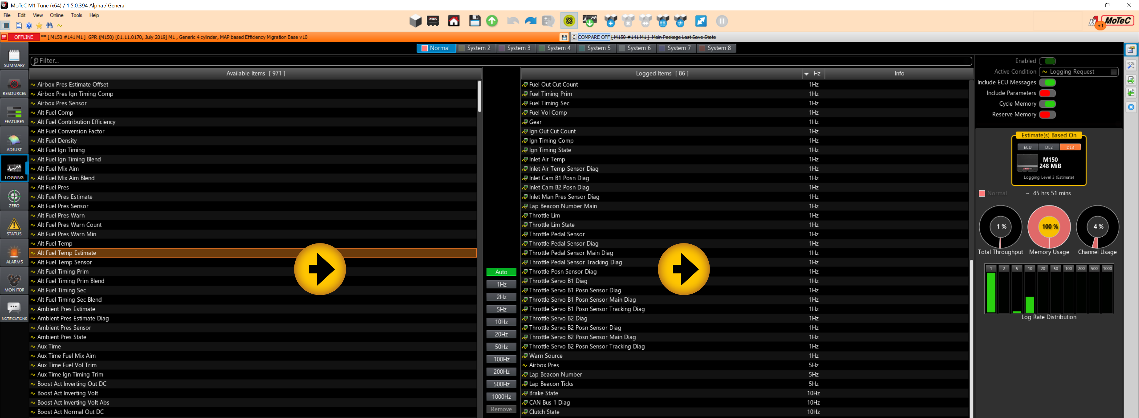 To configure the M1 logging System, select from the Available Items section and move Item/s to the Logged Items section.