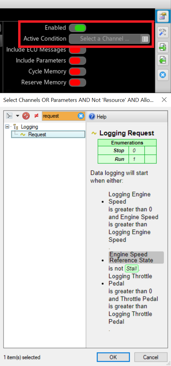 - Cycle Memory when turned on this will allow the logging system to overwrite data from the start after the memory is full. When this is off the logging will stop when the memory is full.