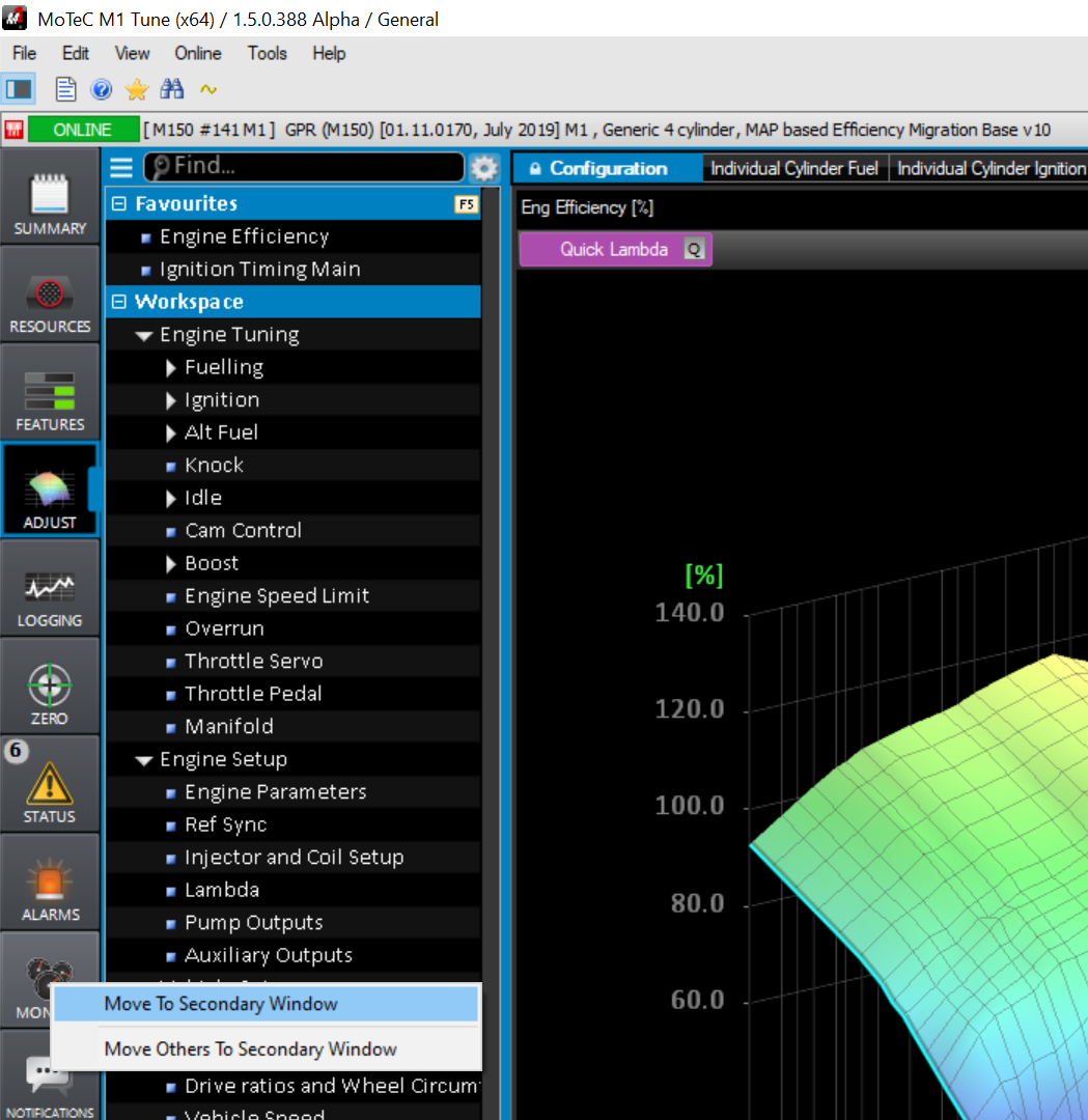 Note: Closing the Secondary Window will move all views back to the Primary Window.