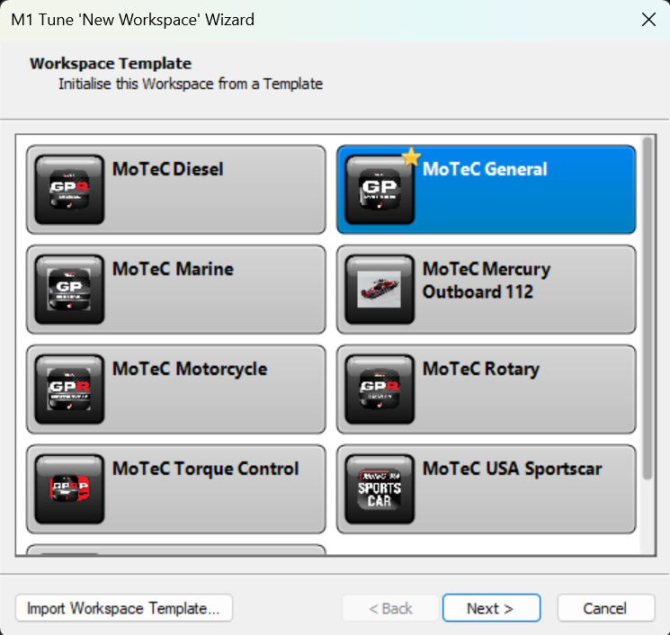 At this point you can Import a Workspace Template (.MTF) or choose one from the list.