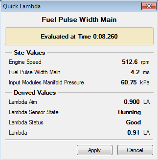This same Quick Lambda function also works with recorded data. See Dyno Tuning with M1 Tune