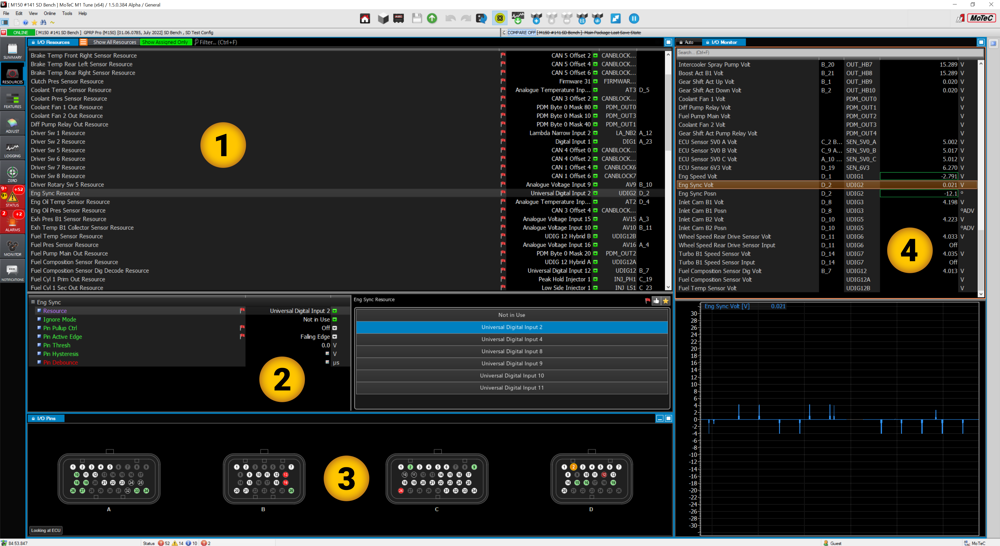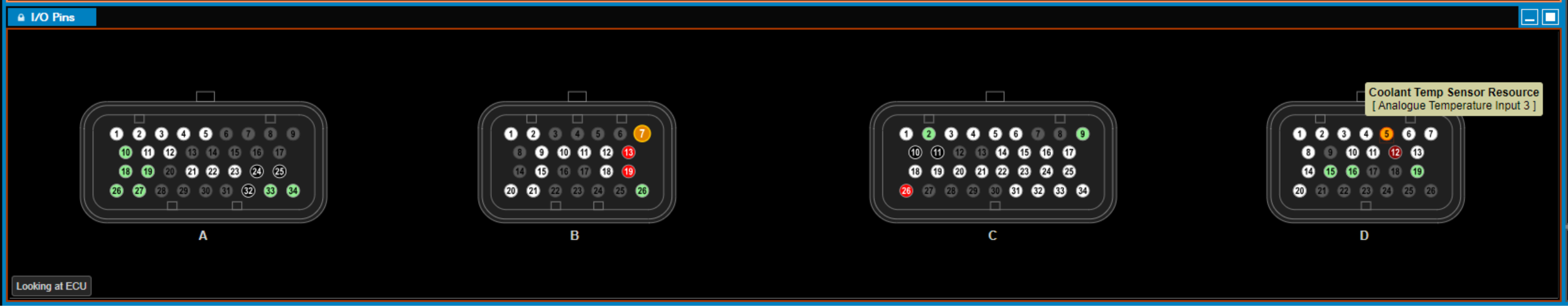 - Hovering the mouse pointer over an assigned pin shows the Resource assigned and the pin name.