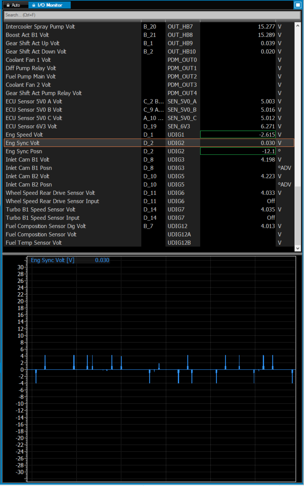 The Auto view within the I/O Monitor displays the relevant channels based on the resource selected.