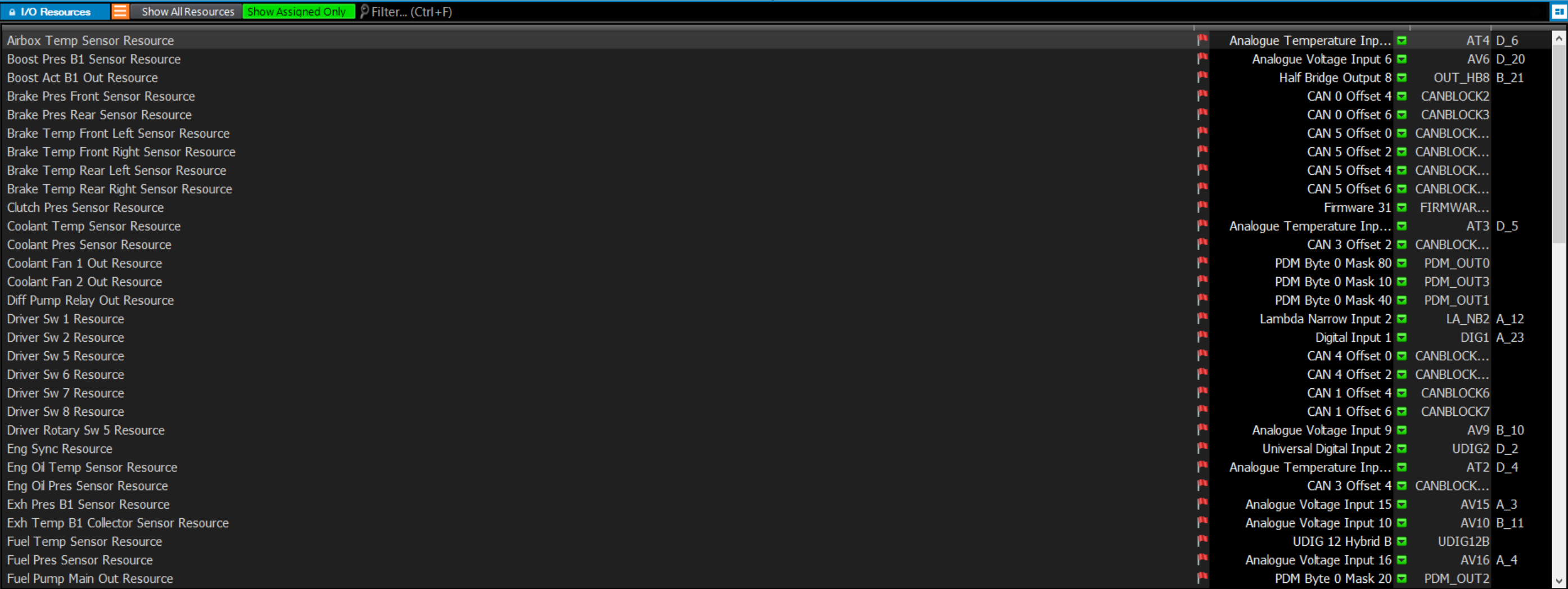 The displayed resources can be toggled between Show All Resources available in the firmware to Show Assigned Only.