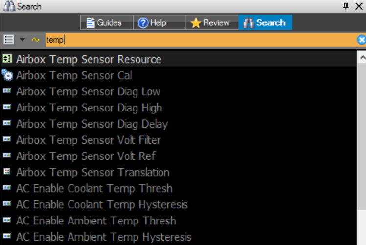 Search will find all parameters and channels contained within the package, listed in